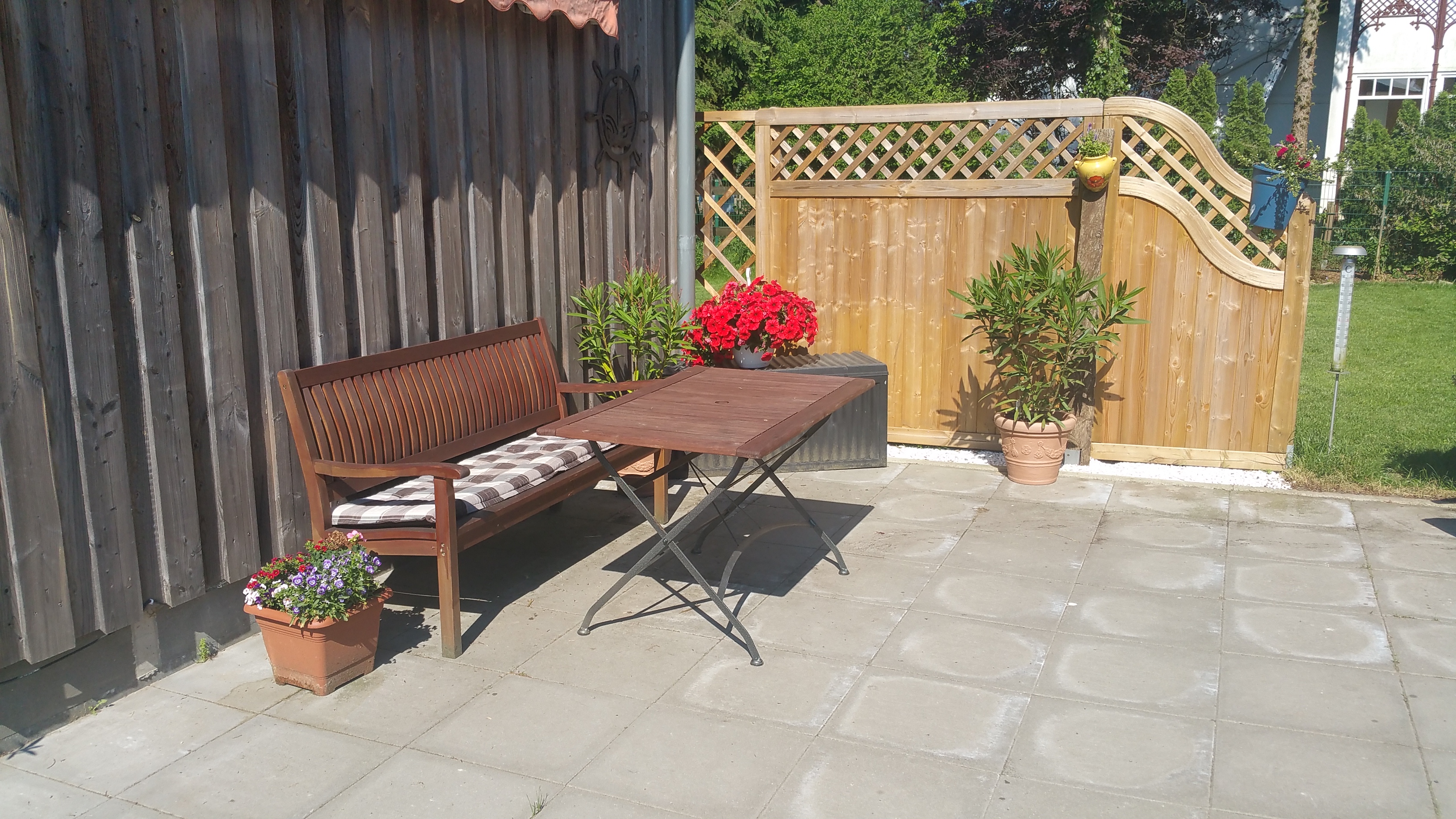 Das bequeme Wohnzimmer, die sonnige Terrasse und ein kleiner Garten ist für Sie da. Kostenfreies W-Lan, TV mit Flachbildschirm ...